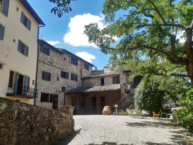 Ett stort plus för att man får ta med eget vin till köttfesten, om man vill ha nåt mer avancerat än husvinet. Det passade oss utmärkt då vi på dagen varit på vår första vinprovning: på vingården Fontodi, bara några kilometer från byn, och köpt med oss deras Chianti Classico, med hundra procent sangiovese-druvor. Fick även förevisat hur produktionen gick till. Från de handplockade druvorna (skörden börjar i september) till lagring och etikettering av flaskor. Vinprovning nummer två var lite längre bort. Nu var vi experter på Chianti-regionen och körde istället två timmar till Bolgheri i Livorno, mot den toscanska kusten till. Här odlar man mer de traditionella druvorna; cabernet sauvignon, merlot, etc. Lunch på vägen till vingården Caccia al Piano intogs i vackra staden Volterra.